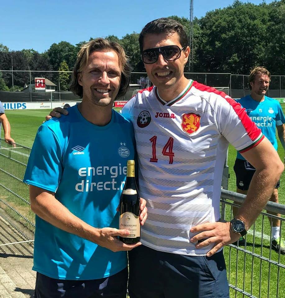 Както при последните си срещи със звезди от такъв калибър, Кирил и този път не пропусна да зарадва бившия холандски национал с бутилки марково българско вино.
